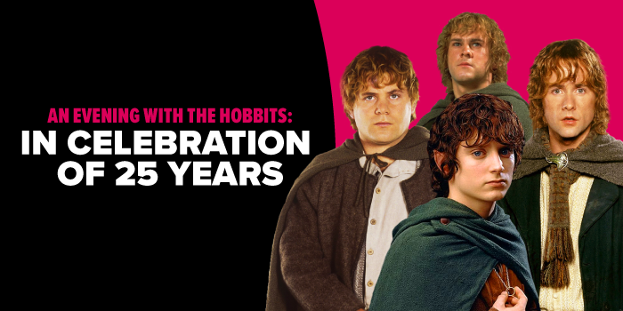 Join The Lord of the Rings 25th Anniversary Reunion Tour: A Once-in-a-Generation Celebration as Elijah Wood, Sean Astin, Dominic Monaghan, and Billy Boyd reunite for to celebrate 25 years of Middle-earth magic. Choose from an exclusive backstage pass, team-up or individual photo ops and autographs, and tickets to their special panel, An Evening with the Hobbits: In Celebration of 25 Years.