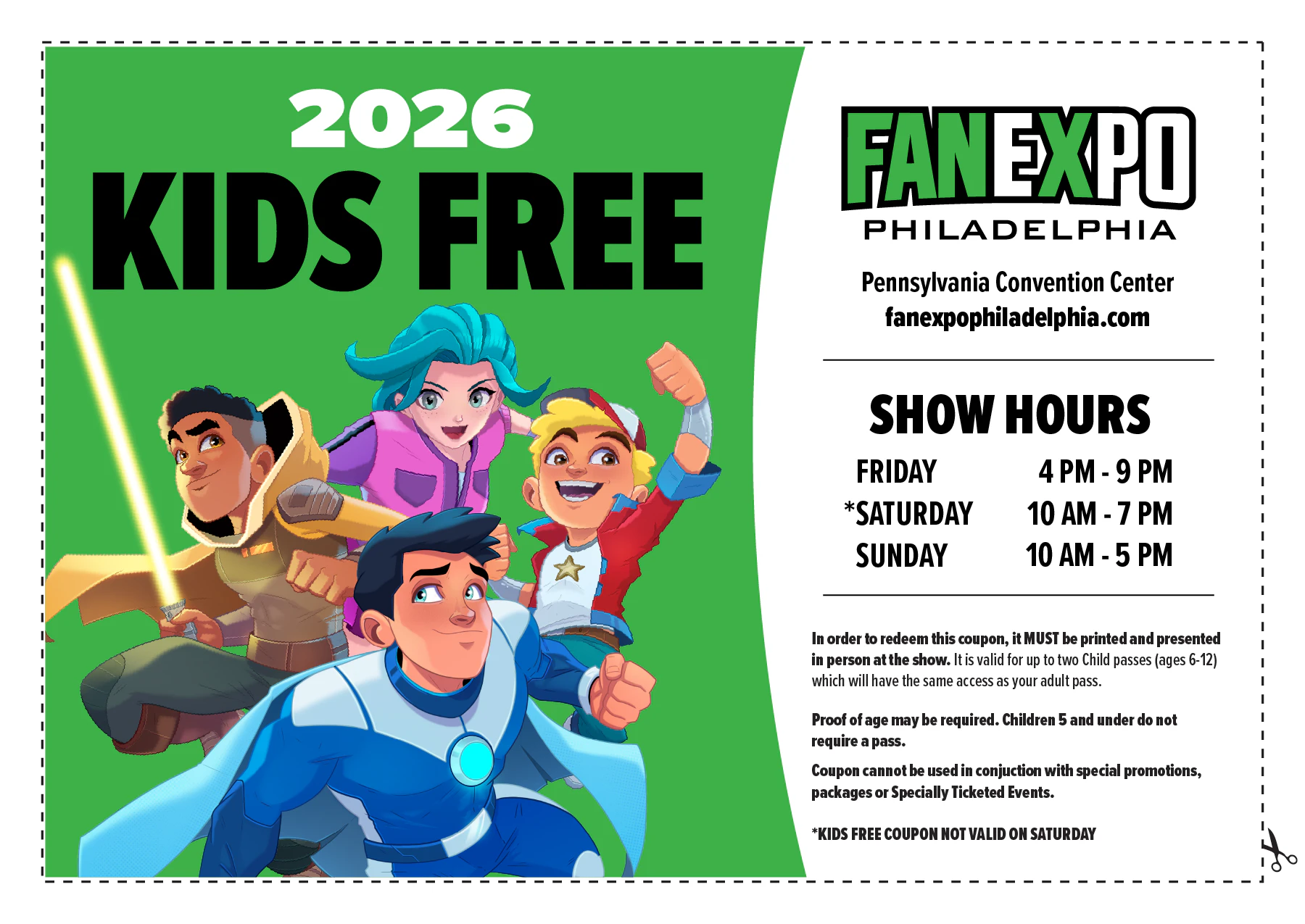 Looking for our Kids Free Coupon? Print this coupon to redeem up to 2 free Child Passes at the show (excluding Saturday).