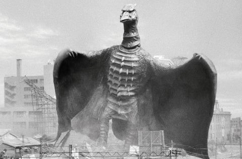 First starring in his own film in 1956, Rodan is a Pteranodon (dinosaur) monster in the Godzilla universe. Similar to Godzilla, he is denoted to be an embodiment of nuclear threat. Known as the Fire Demon, he is a force to be reckoned with in all iterations.